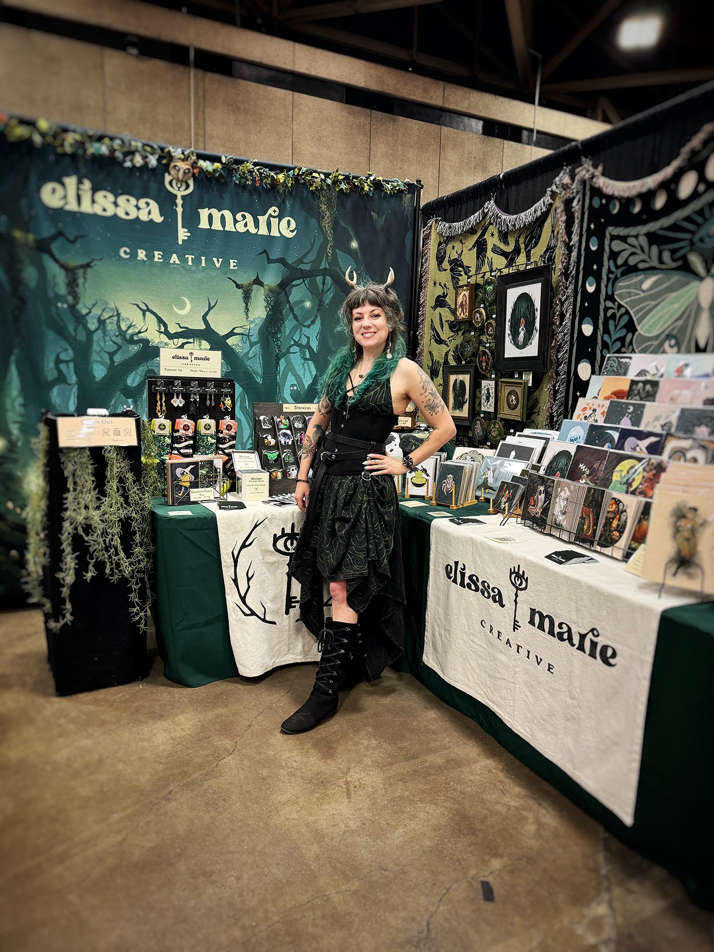 Hi! I'm Elissa (she/her), the artist and sole biz-runner of Elissa Marie Creative. As an introverted swamp witch, I revel in creating magickal worlds in which to let imaginations wander. I focus primarily on illustration, offering my work in the form of art prints, stickers, blankets, apparel, and a slew of other cozy wares. I aim to make art accessible and affordable, to encourage imaginations, and to illustrate books well into my crone years. Preferably nestled in a warm cottage surrounded by forest, of course.