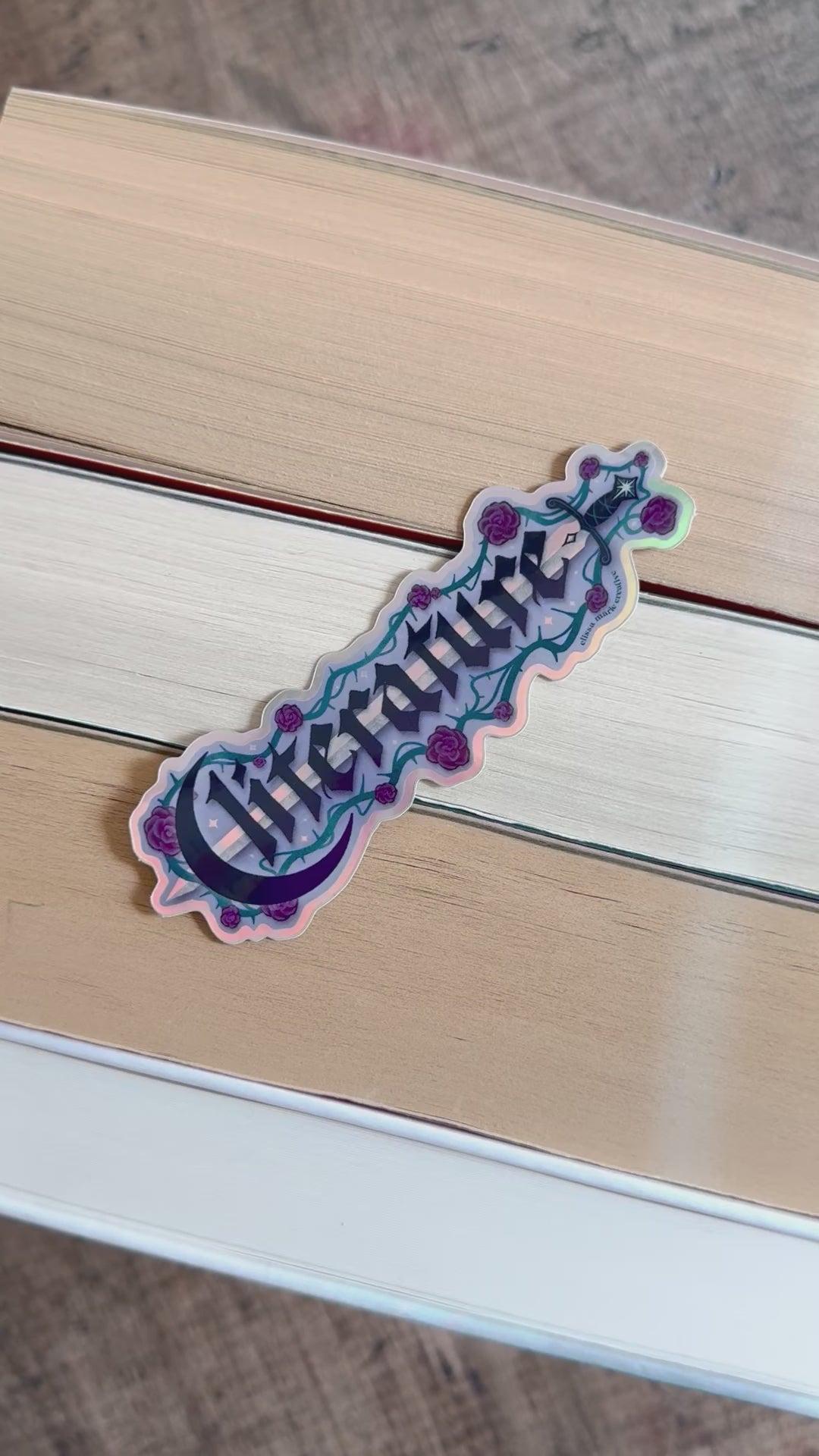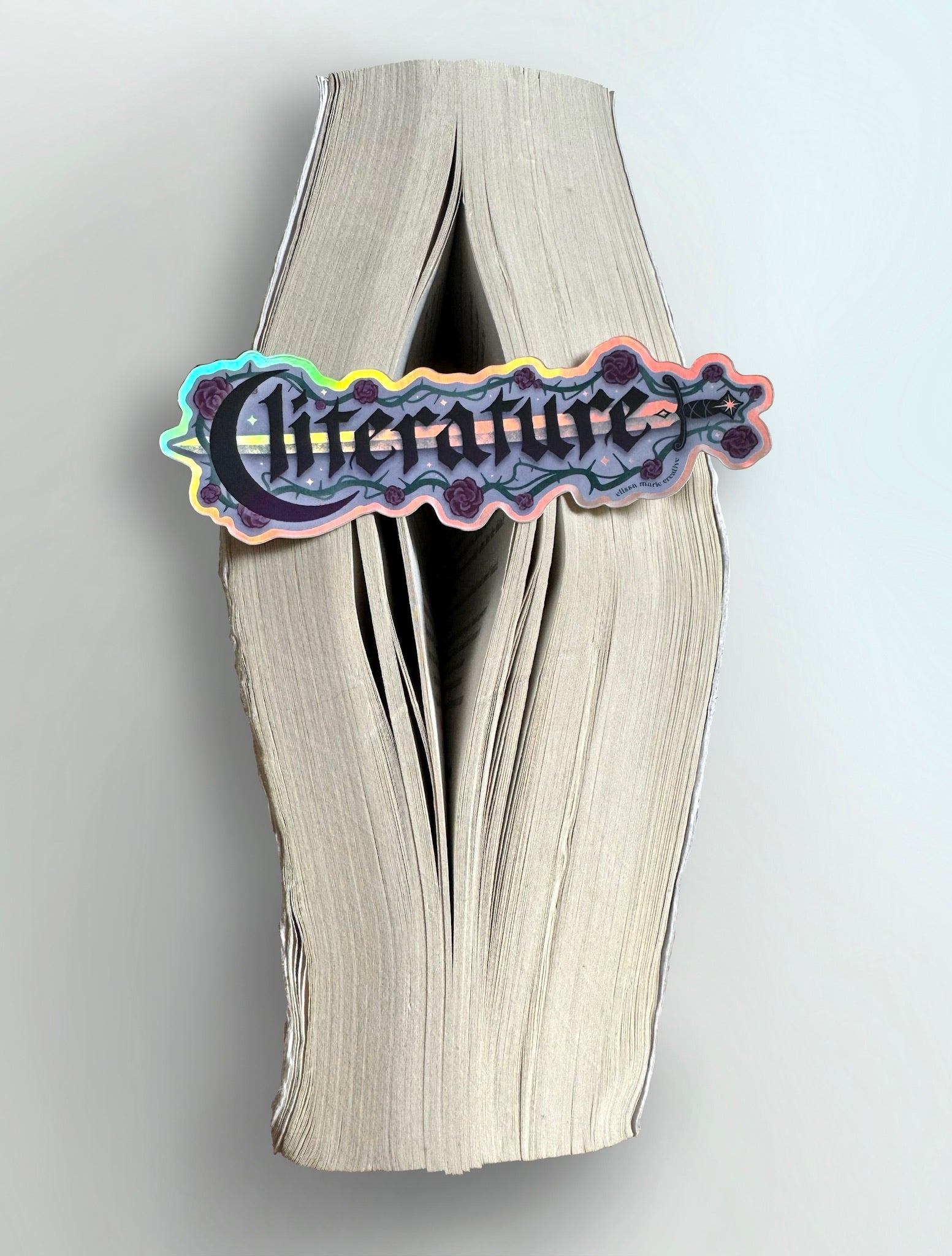 Where are my booktok girlies? Introducing the Cliterature Holo Sticker for bold book lovers! Made from weather-resistant holographic vinyl, this bookish sticker is perfect for decorating Kindles and e-readers, water bottles, laptops and journals. Its Maasverse-inspired design of thorns and roses (surrounding a majestic sword fit for starborn fae, of course) will inspire you to take on new arousing literary adventures.