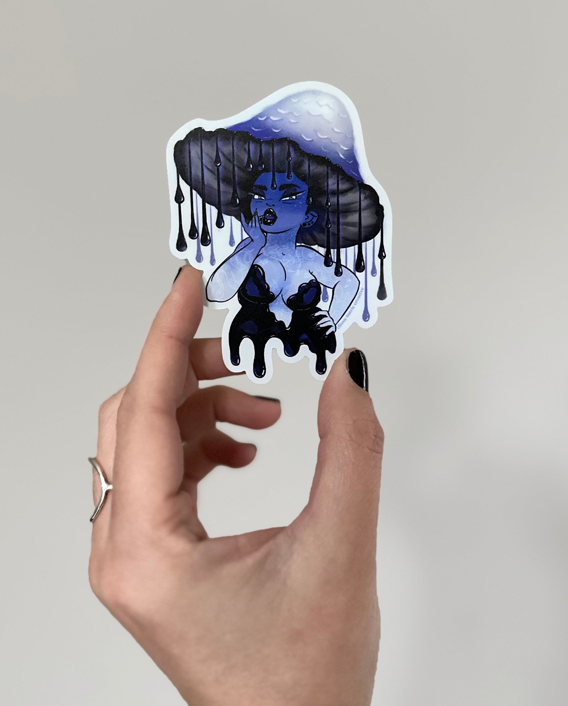 The most goth of all mushrooms, coprinopsis atramentaria, is now available as a sticker! Now you can stick this cutie on your laptop, your notebook, your face, or wherever you like to stick things. Stickers ship fo' free!