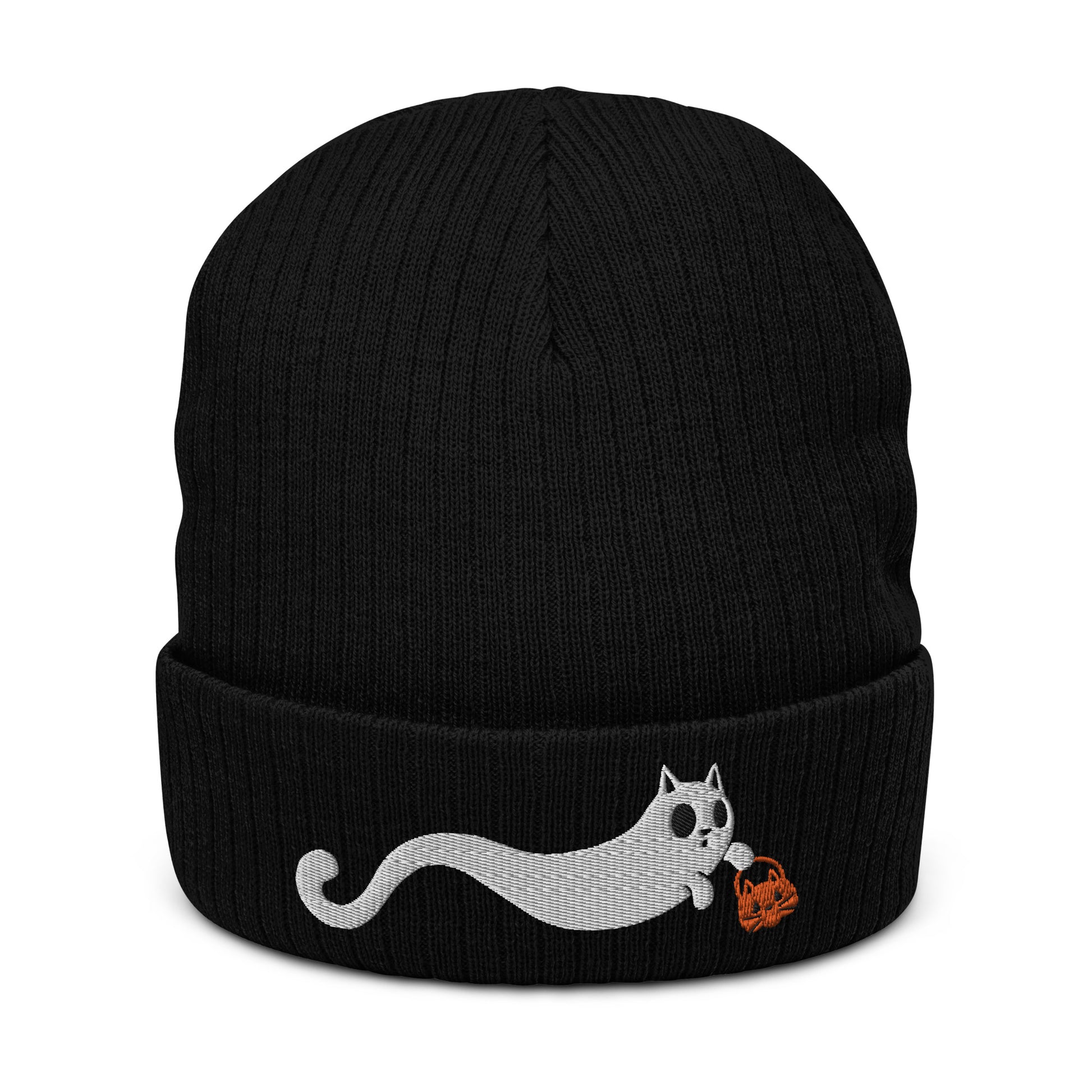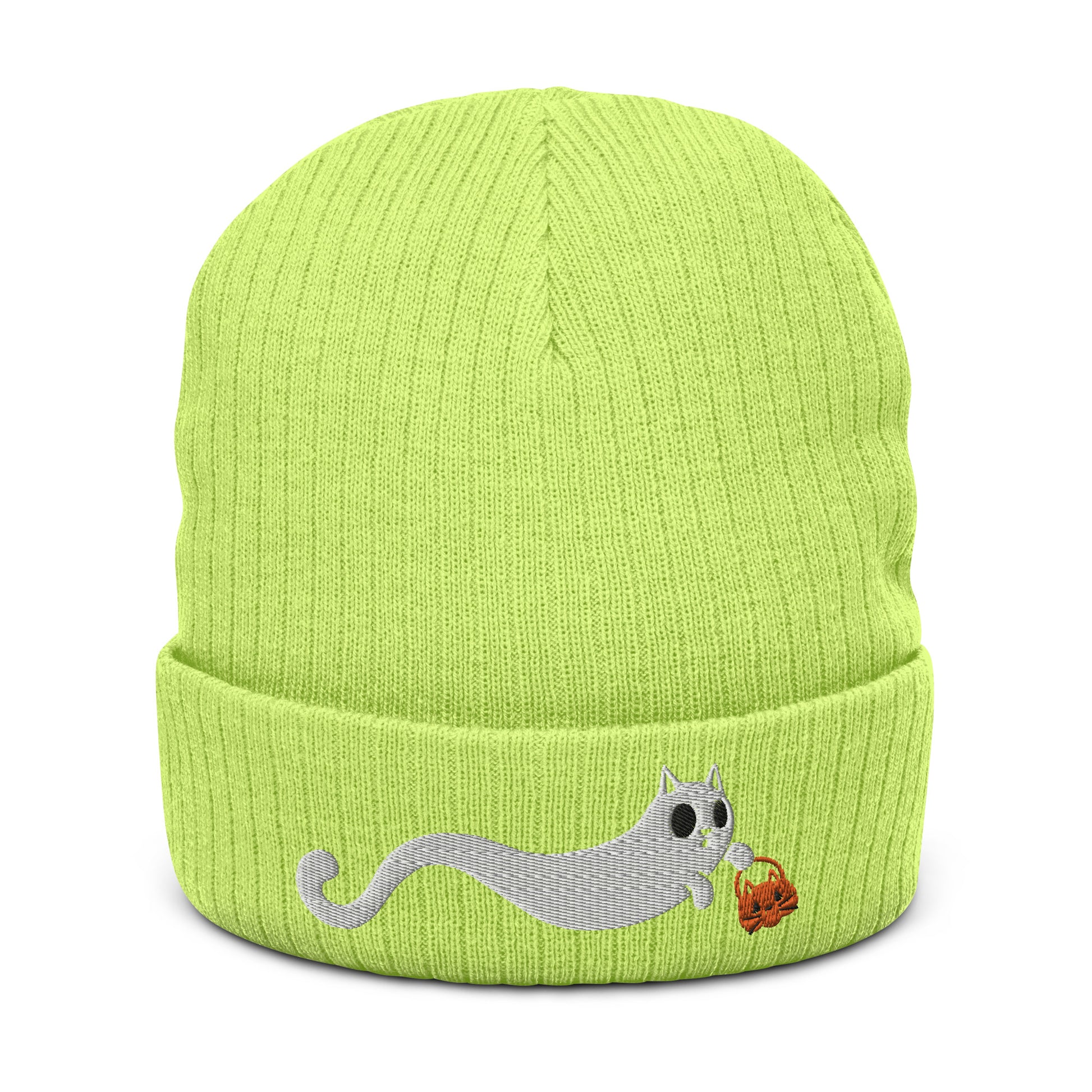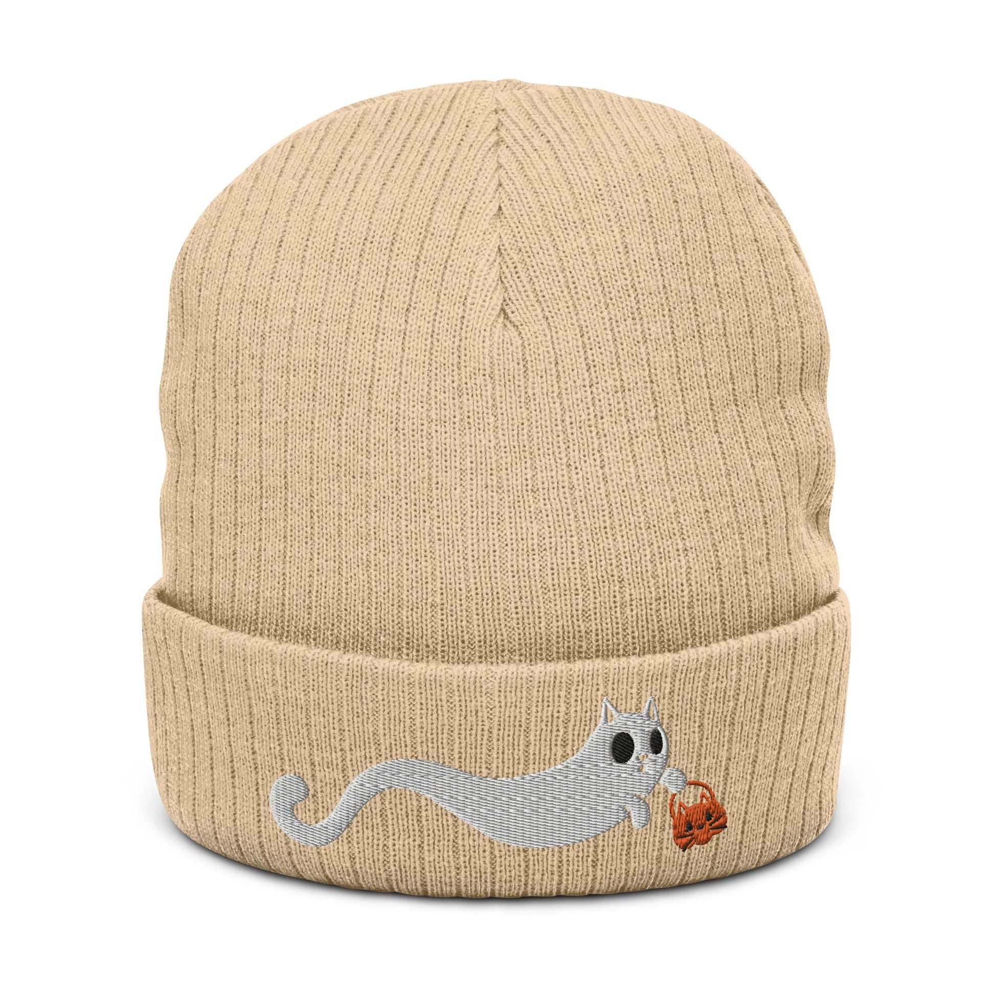 Scaredy Cat Ribbed Knit Beanie