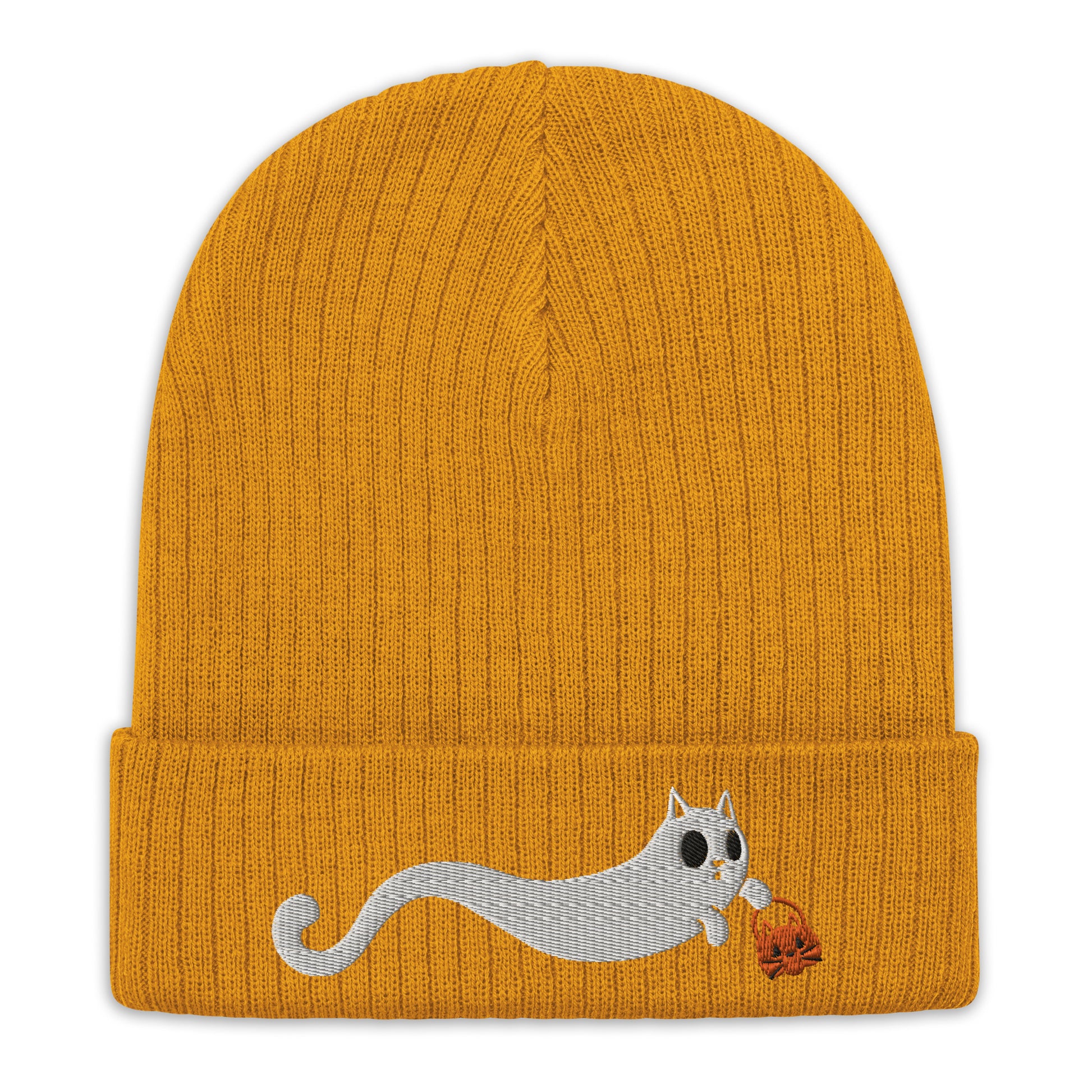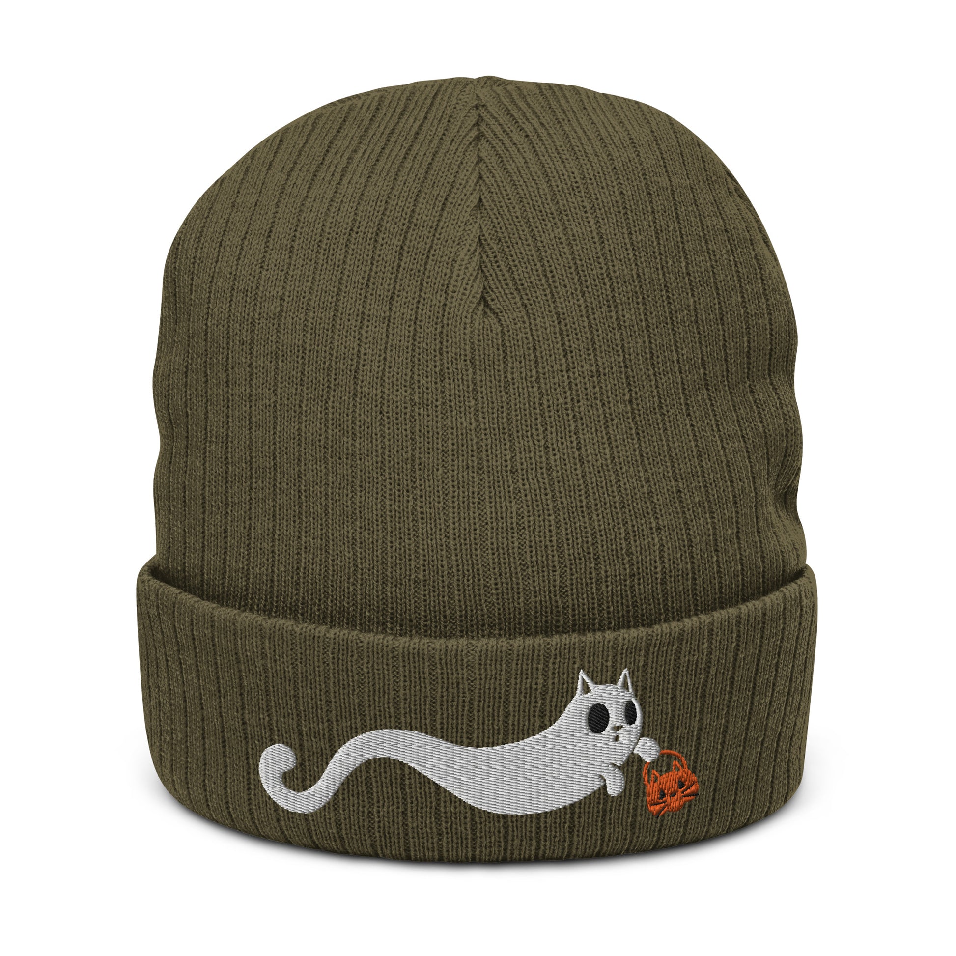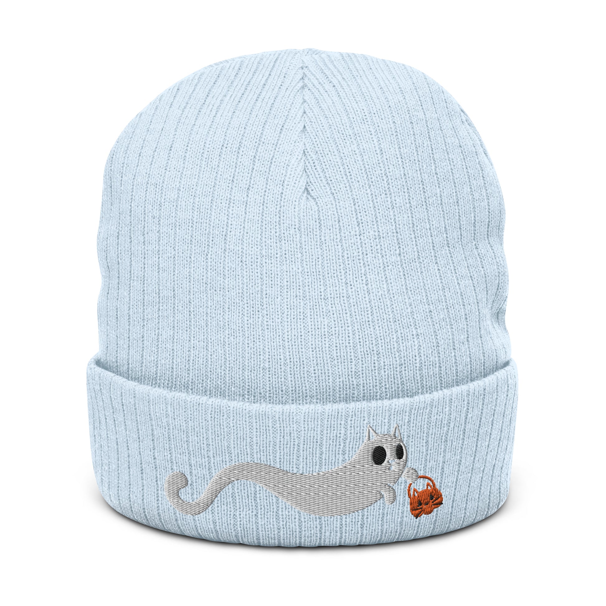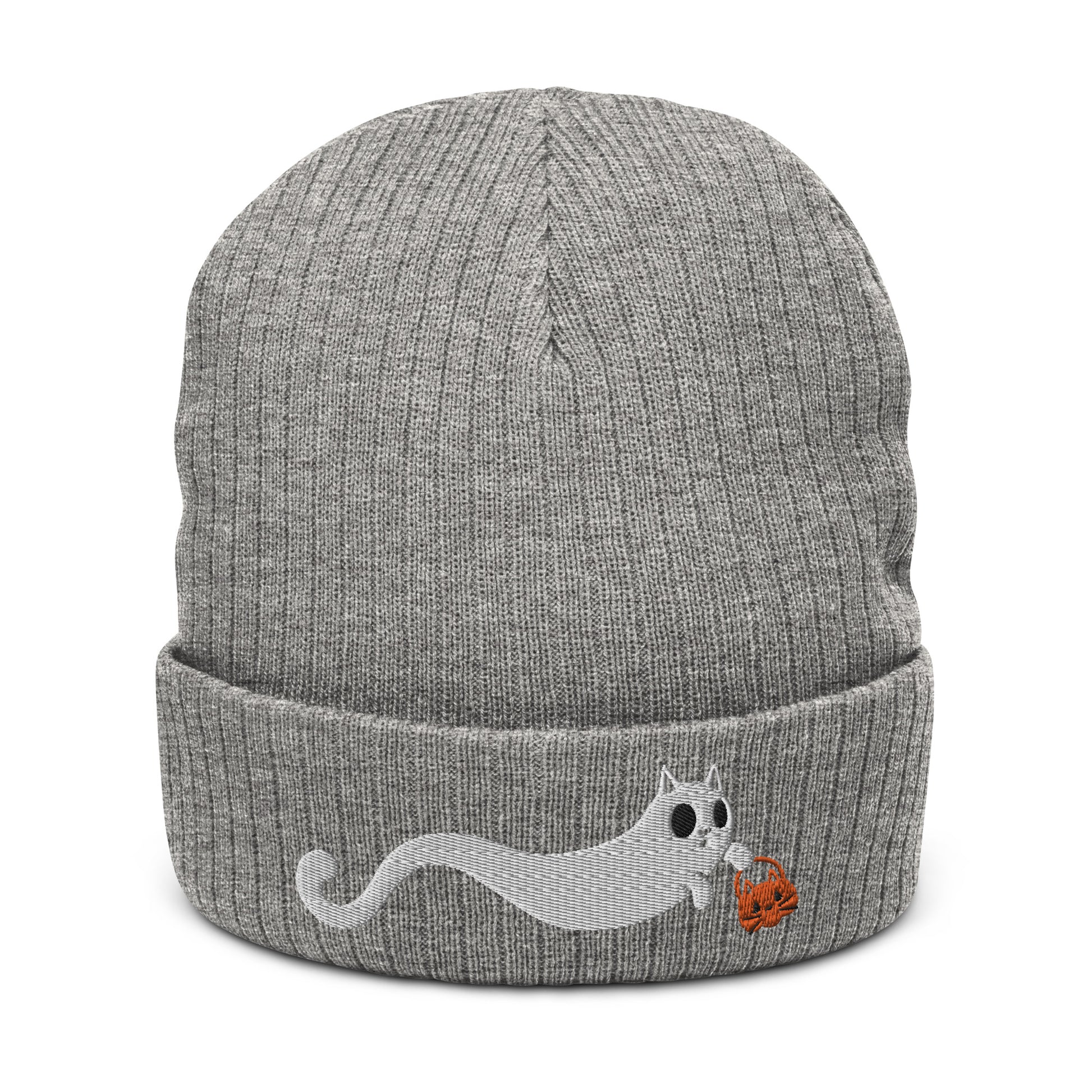 Scaredy Cat Ribbed Knit Beanie