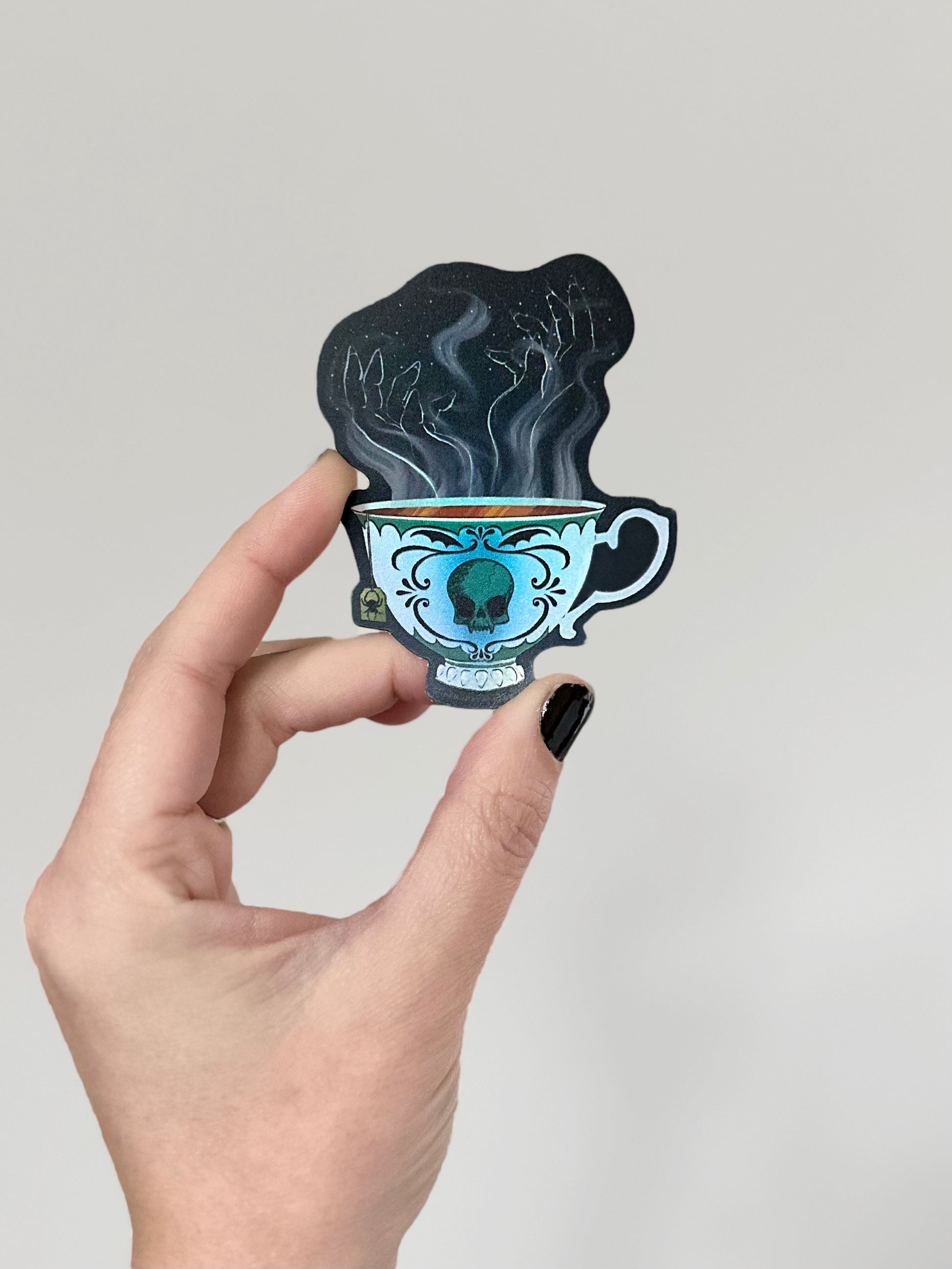 Your morning brew is more than a routine -- it's a ritual. Stick this spooky bb on your laptop, your notebook, your face, or wherever you like to stick things. Stickers ship fo' free!